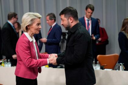 EU-kommisjonens president Ursula von der Leyen (t.v.) og Ukrainas president Volodymyr Zelenskyj.…