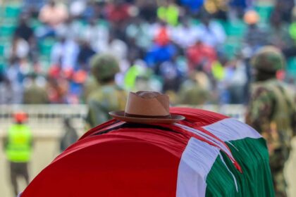 Kisten til Raila Odinga under bisettelsen hans fredag. Foto: Andrew Kasuku /…