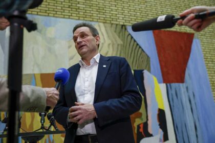 MDG-leder Arild Hermstad på en pressekonferanse om budsjettforhandlingene lørdag. Foto: Jonas Been…