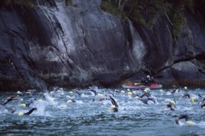 Norseman starter med svømming i Hardangerfjorden i Eidsfjord. Her fra konkurransen i…