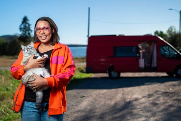 – Det fine med å bo i bilen er at vi kan våkne opp akkurat hvor vi vil. Ofte er det en vakker strand i Hellas, smiler Djesa bak rosa,…