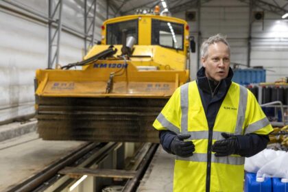 Samferdselsminister Jon-Ivar Nygård (Ap) på Alnabruterminalen der vintermaskiner står klare til bruk.…