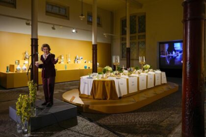 Dronning Sonja åpnet tirsdagens arrangement i Dronning Sonja Kunststall, foran utstillingen «Ved…