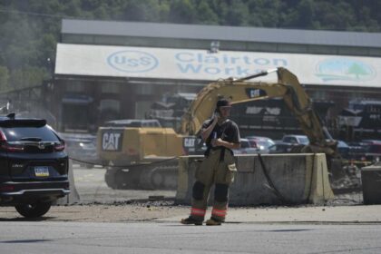 Nødetatene jobber på stedet etter en eksplosjon ved en stålfabrikk i Clairton…