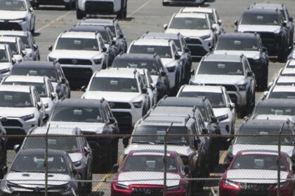 Rekker av nye Toyota-biler i Long Beach i California. Foto: Damian Dovarganes…