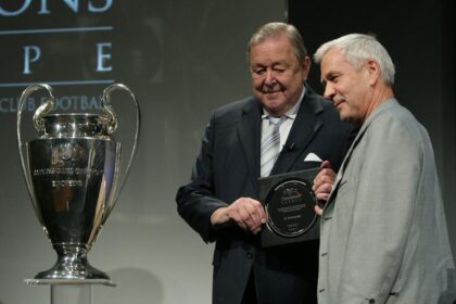 Ove Kindvall (t.h.) sammen med tidligere Uefa-president Lennart Johansson i 2005. Foto:…