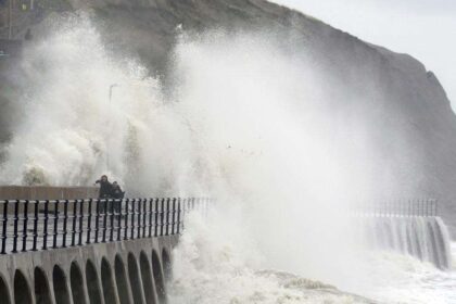 Voldsomme bølger slo inn over England i dag da stormen traff. Nå…