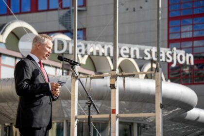 Samferdselsminister Jon-Ivar Nygård (Ap) under den offisielle åpningen av nytt dobbeltspor og…