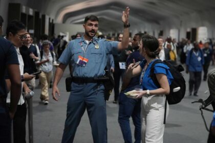 Sikkerhetsfolk ba folk torsdag om å forlate konferansesenteret i Belém i Brasil.…