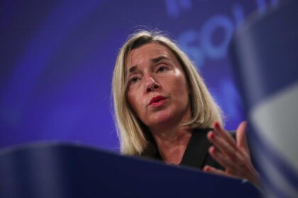 Federica Mogherini under en pressekonferanse i Brussel i 2019, da hun var…