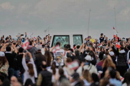 Oppmøtet var stort da pave Leo besøkte havneområdet i Beirut tirsdag. Her…