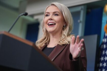 Pressetalsperson i Det hvite hus, Karoline Leavitt, under en pressebrifing onsdag. Foto:…