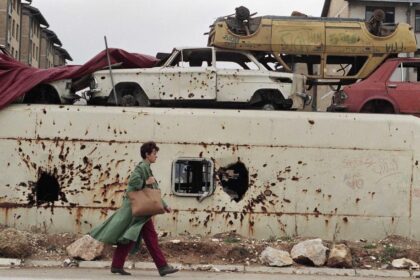 En bosnisk kvinne på vei gjennom et nabolag i Sarajevo som ofte…