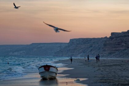 Fiskere på stranden ved landsbyen Eyl i Puntland i Somalia, som er…