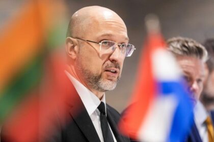 Ukrainas forsvarsminister Denys Sjmyhal under forsvarsministermøtet i Joint Expeditionary Force (JEF) i…