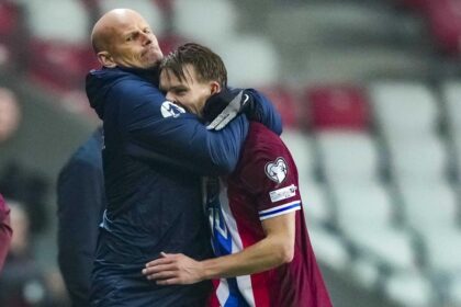 Ståle Solbakken og Martin Ødegaard under bortekampen mot Israel i VM-kvalifiseringen. Foto:…
