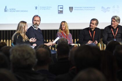 Elin Sørsdahl, i midten, på mediekonferansen Svarte Natta i Tromsø. Trond Giske…