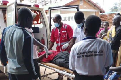 En mann som ble skadet i massekollisjonen i Uganda onsdag, får hjelp…