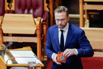 Nikolai Astrup (H) ga statsministeren en pose med tuttifrutti-godteri under spørretimen i…