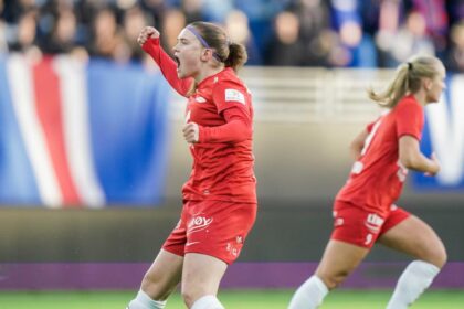 Branns Signe Gaupset jubler etter kampens tredje mål i toppseriekampen mellom Vålerenga…