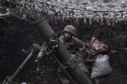 En ukrainsk soldat i en bombekasterstilling i Donetsk-regionen øst i landet. Militærstøtten…