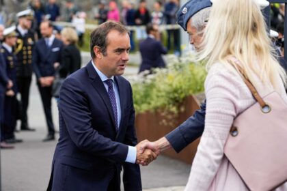 Frankrikes forsvarsminister Sébastien Lecornu, her ved Normandiemonumentet i Oslo under et besøk…