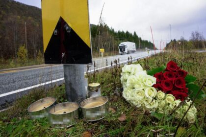 Det er lagt ned blomster og tent lys ved ulykkesstedet der fem…