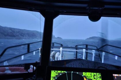 En redningsskøyte på vei til en leteaksjon etter tre utenlandske fisketurister i…
