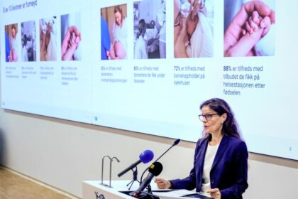 Helsedirektør Cathrine M. Lofthus presenterer den store fødselsundersøkelsen. Foto: Terje Bendiksby /…