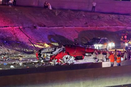 Helikopteret styrtet på Highway 50. Foto: Robert Petersen via AP / NTB…