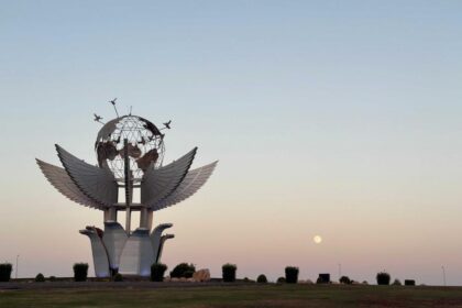 Solen går ned på fredsplassen i Rødehavsbyen Sharm el-Sheikh i Egypt, der…