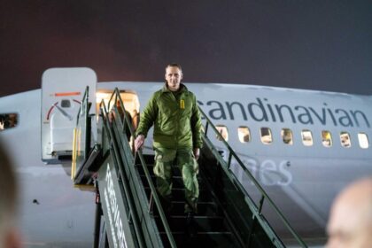 Forsvarssjef Eirik Kristoffersen på vei ut av i et fly med medisinsk…